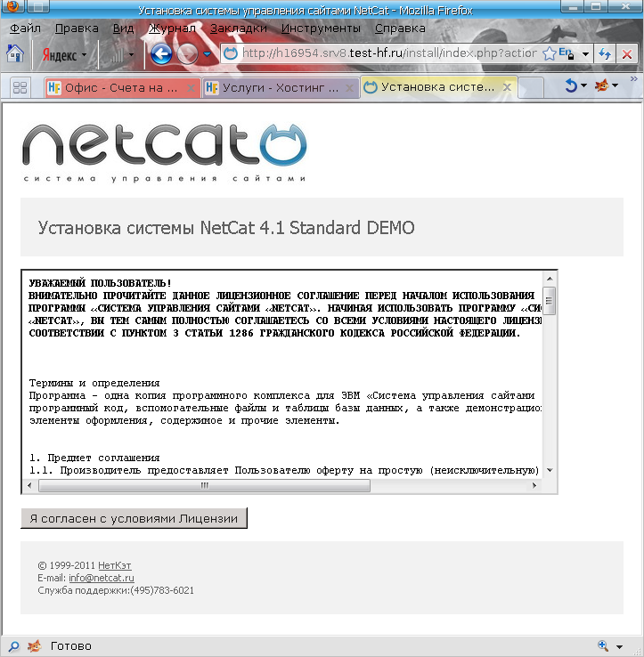 Соглашаемся с условиями лицензионного соглашения CMS NetCat:
